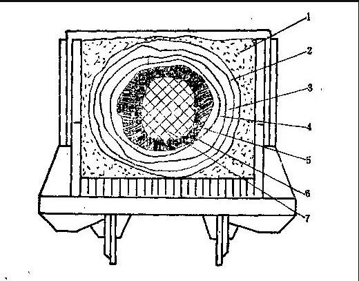 पोष्ट-फर्नेस सामग्रीहरू बाहिरी देखि भित्री तहहरूमा निम्न घटकहरू हुन्छन्: