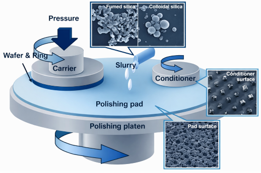 अर्धचालक निर्माण मा, दकेमिकल मेकानिकल प्लानराइजेशन (CMP)प्रक्रिया वेफर सतह प्लानराइजेशन प्राप्त गर्नको लागि मुख्य चरण हो, सीधा पछि लिथोग्राफी चरणहरूको सफलता वा विफलता निर्धारण। CMP मा महत्वपूर्ण उपभोग्यको रूपमा, पालिसिङ स्लरीको प्रदर्शन हटाउने दर (RR) नियन्त्रण गर्न, दोषहरू न्यूनीकरण गर्न र समग्र उपज बढाउने अन्तिम कारक हो।